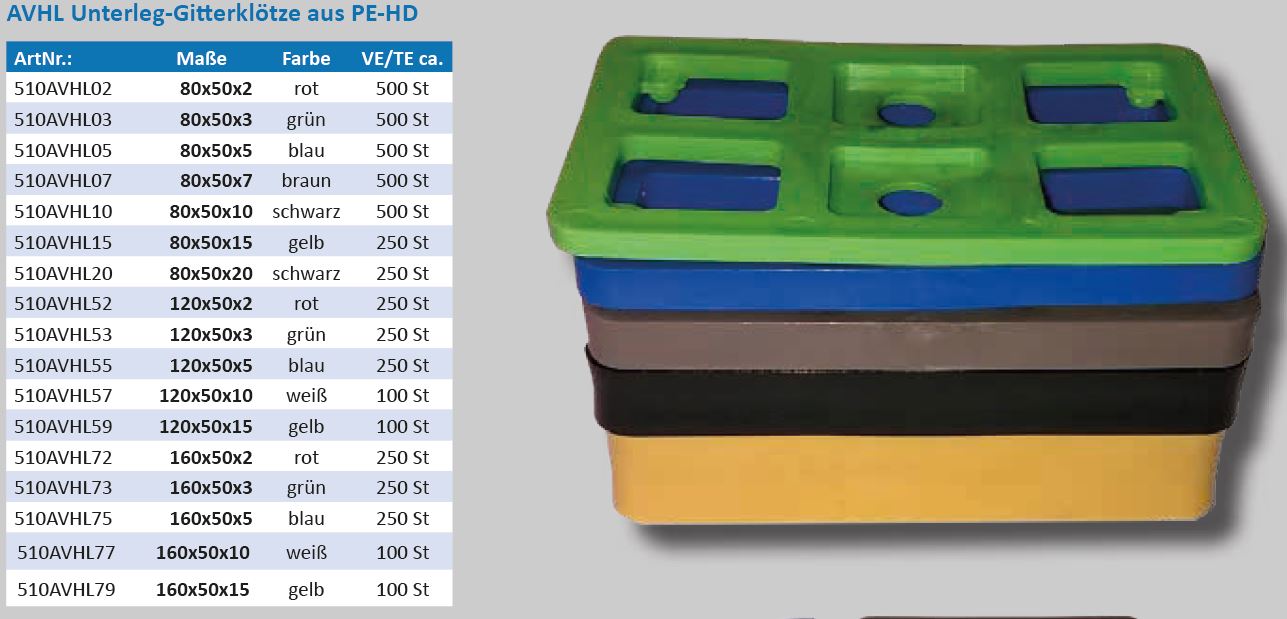 Standardgrößen in schwarz oder weiß [mm]: 6x2, 6x3, 9x2, 9x3, 9x4, 9x5, 9x6, 12x2, 12x3, 12x4.